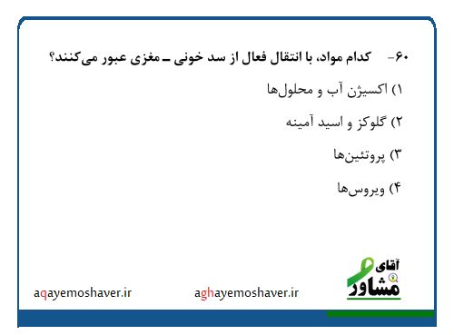 گزینه 2 صحیح است. گلوکز و اسیدهای آمینه میتوانند از سد خونی مغزی عبور کنند.